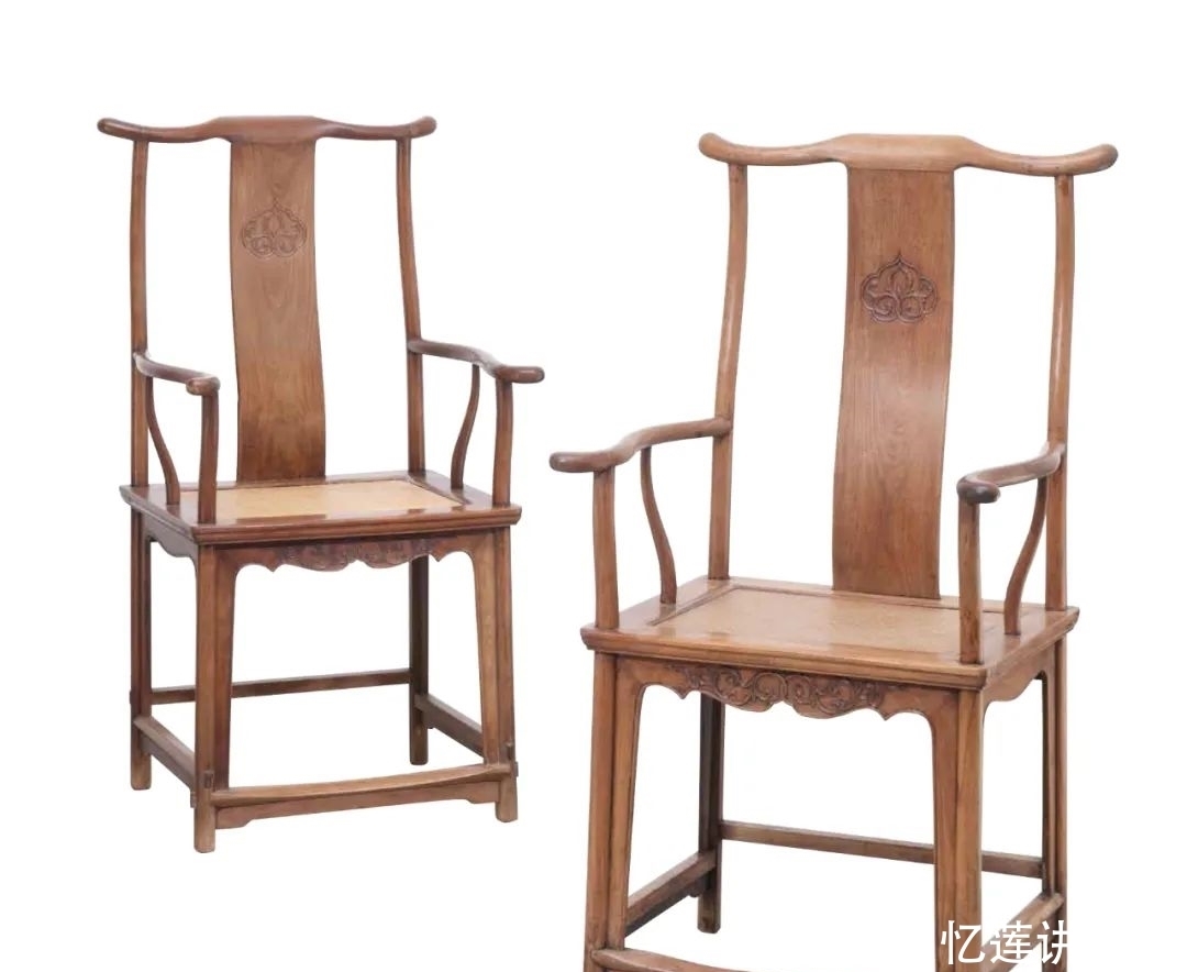 形态及神韵极为相似的家具,往往出自同一地区同一作坊,甚至同一位匠师。然而,市场的原因,这两把貌似成对的官帽椅,注定了无法终成眷属天各一方。