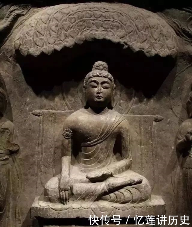 建于唐代中期8世纪的宝庆寺释迦造像龛,有三尊流失日本,现藏于东京国立博物馆。释迦佛趺坐于宝床上,身后有靠背,直搭脑两出头。