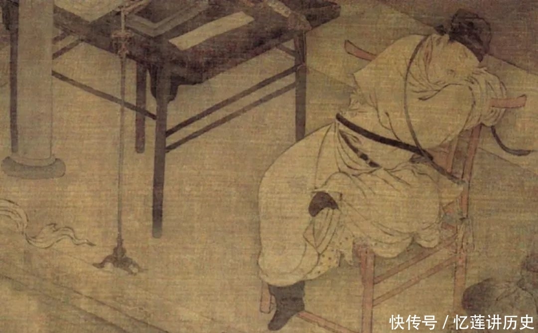 元代蒙古人入主中原,家具的使用基本延续两宋,除了交椅登堂入室,成为重要的坐具外,基本没有其他建树。元代画家刘元所绘的司马槱梦苏小图,美国辛辛那提博物馆藏。图中司马槱头枕臂弯搭在椅子搭脑上酣睡,该椅亦无扶手。